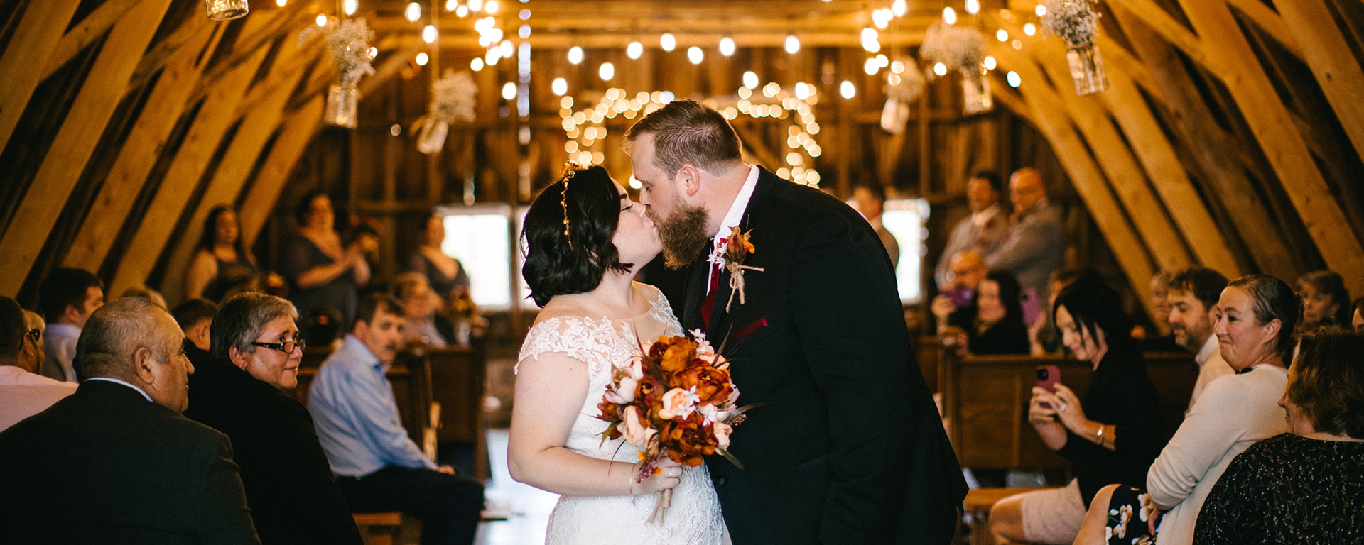 Once we got back to Arlington Acres, we took photos of the wedding party and got ready for the guests to arrive. Since it was raining, Krista and Tyler had their ceremony in the Toolshed under the glow of the string lights. It was the perfect ceremony location for a rainy wedding day. After the ceremony was over and they were ready to head back over to the barn, I'll never forget the venue staff holding down the tent outside the Toolshed so that it wouldn't blow away in the wind and rain as Krista and Tyler got on a golf cart to be driven to the reception 😆. They are the sweetest couple, and definitely ready to weather any storm together.