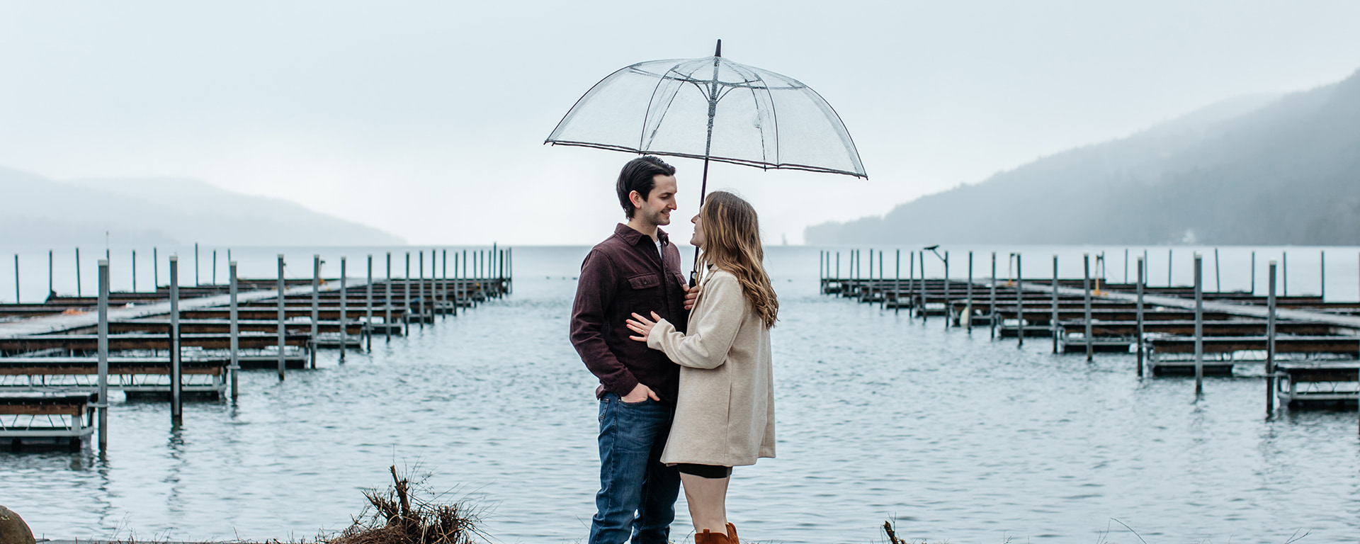 I had such a great time taking these Otsego Lake rainy engagement photos in Cooperstown, NY with Emilie and Joe. As an upstate NY wedding photographer, one of the questions I get asked a lot is if we'll still take engagement photos in the rain, and the answer is yes and no. I try to keep an eye on the weather before all my engagement sessions and give you the option to reschedule if it's going to rain. While I won't do an engagement session if it's clear there will be heavy rain (the wonderful thing about engagement sessions is that, unlike wedding days, they can be easily rescheduled 😅) if there will be light rain and you'd like to go ahead with the session anyway, we can absolutely do that.