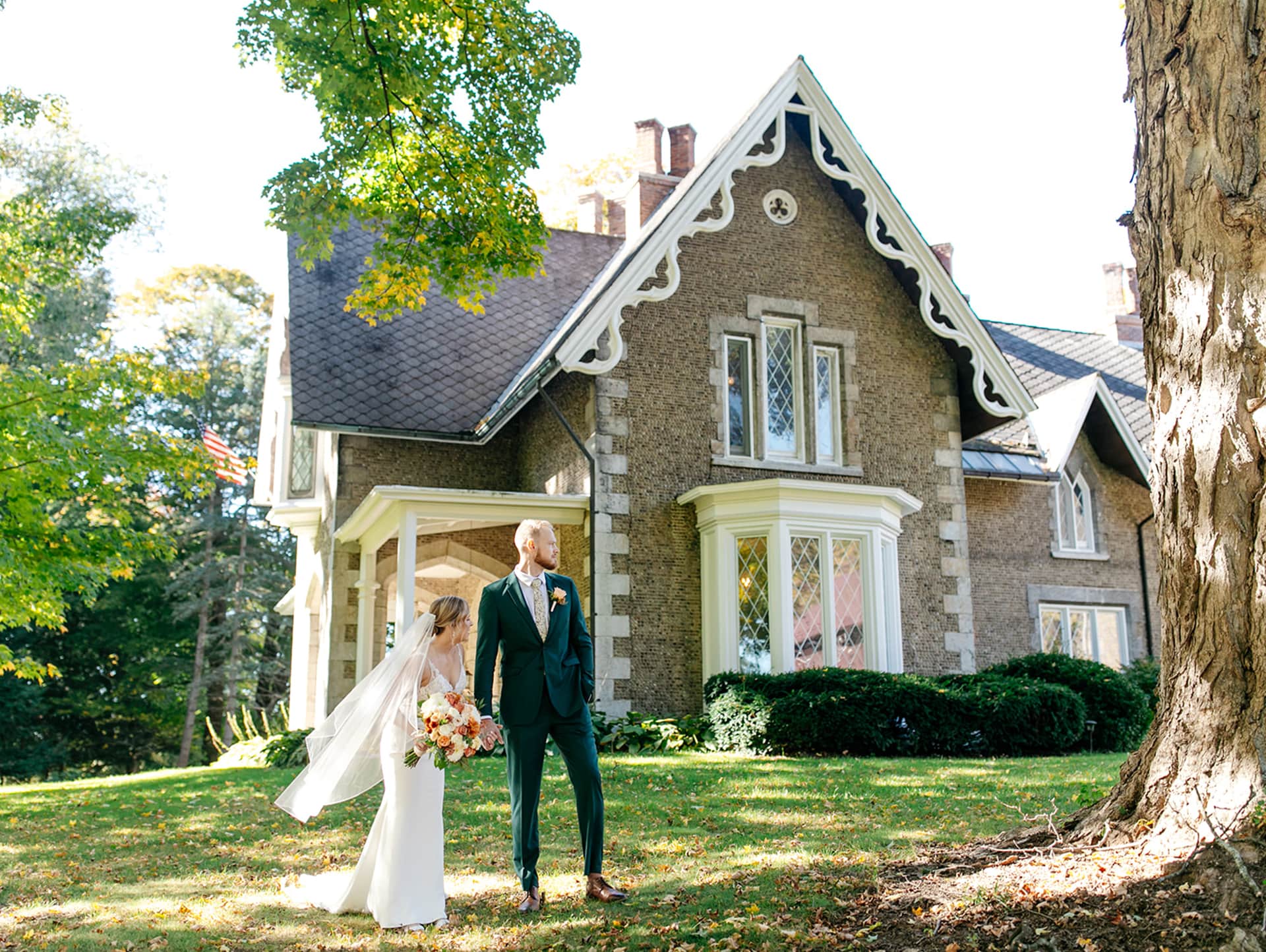 For Sarah and Mike, the front lawn was the perfect spot for their first look. Lush greenery, a beautiful view, and the two of them reading their private vows on the front porch. So sweet and intimate - it’s moments like these that make a wedding day feel so special.